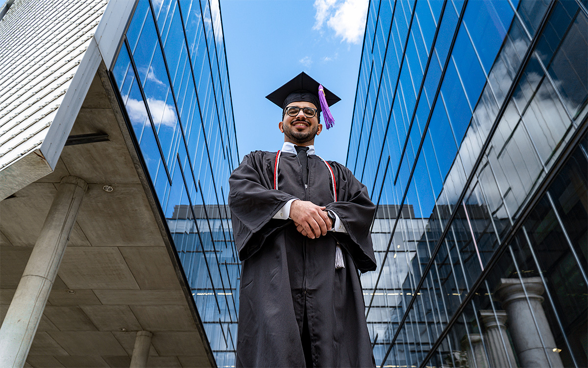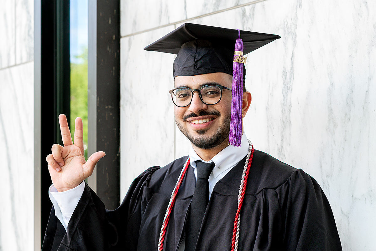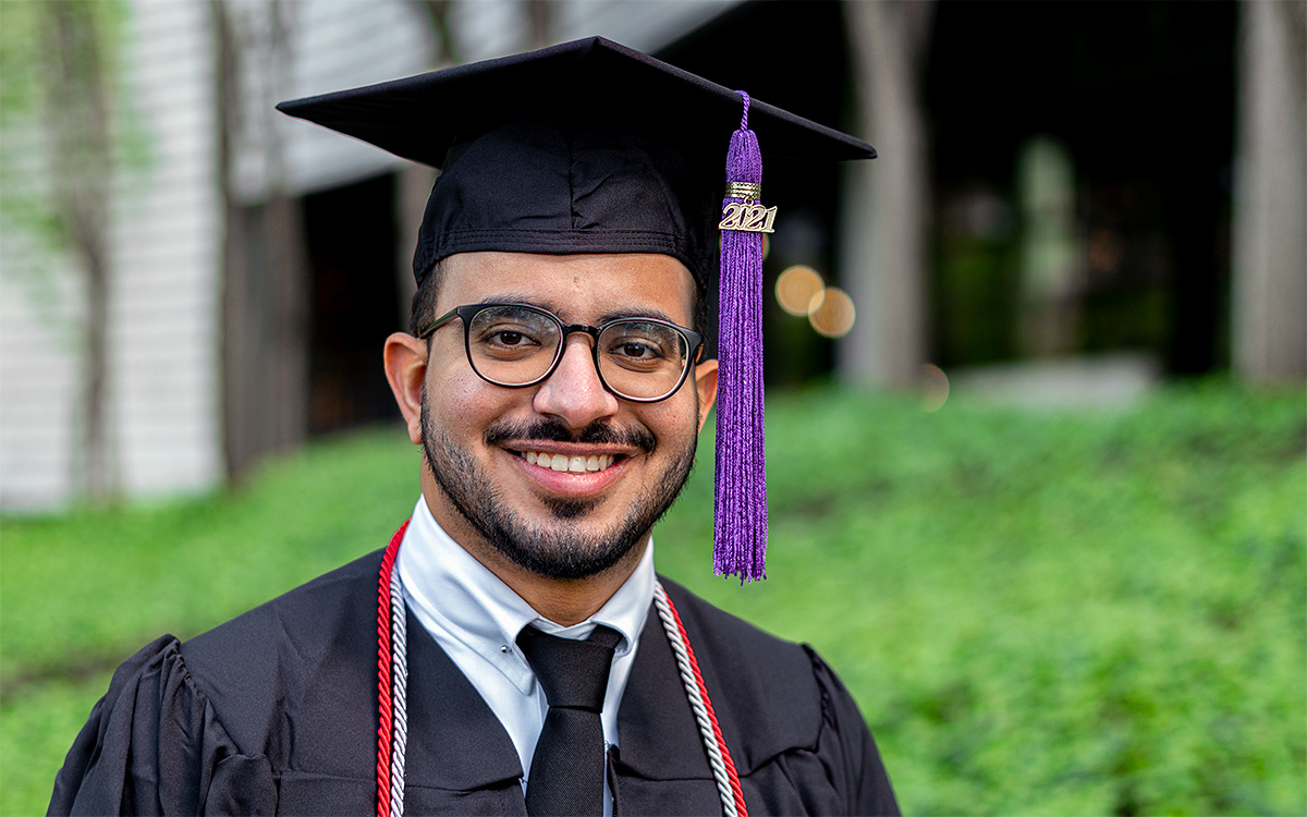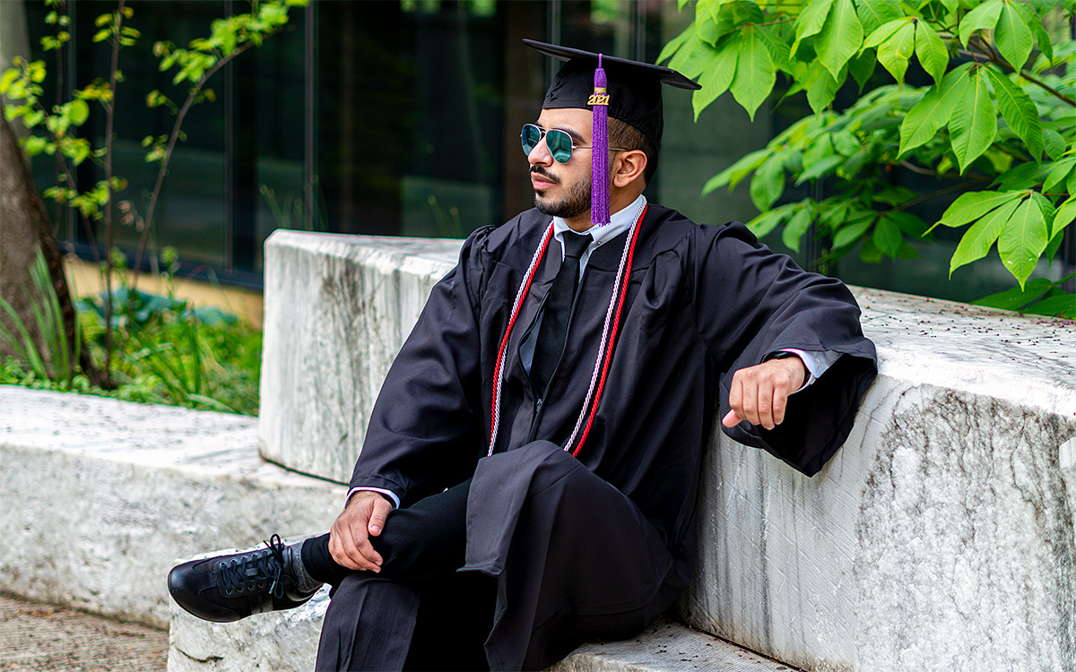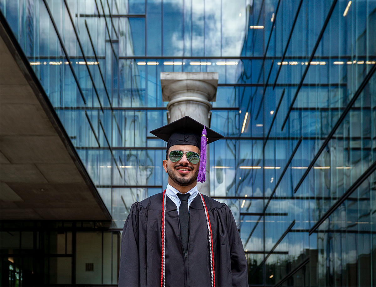 This photo session took place at The Ohio State University’s Knowlton School of Architecture, in recognition of Marwan’s undergraduate graduation with a degree in Architecture. The iconic pillars and lush gardens of the college grounds were significant locations to Marwan who celebrated his achievement as an international student.